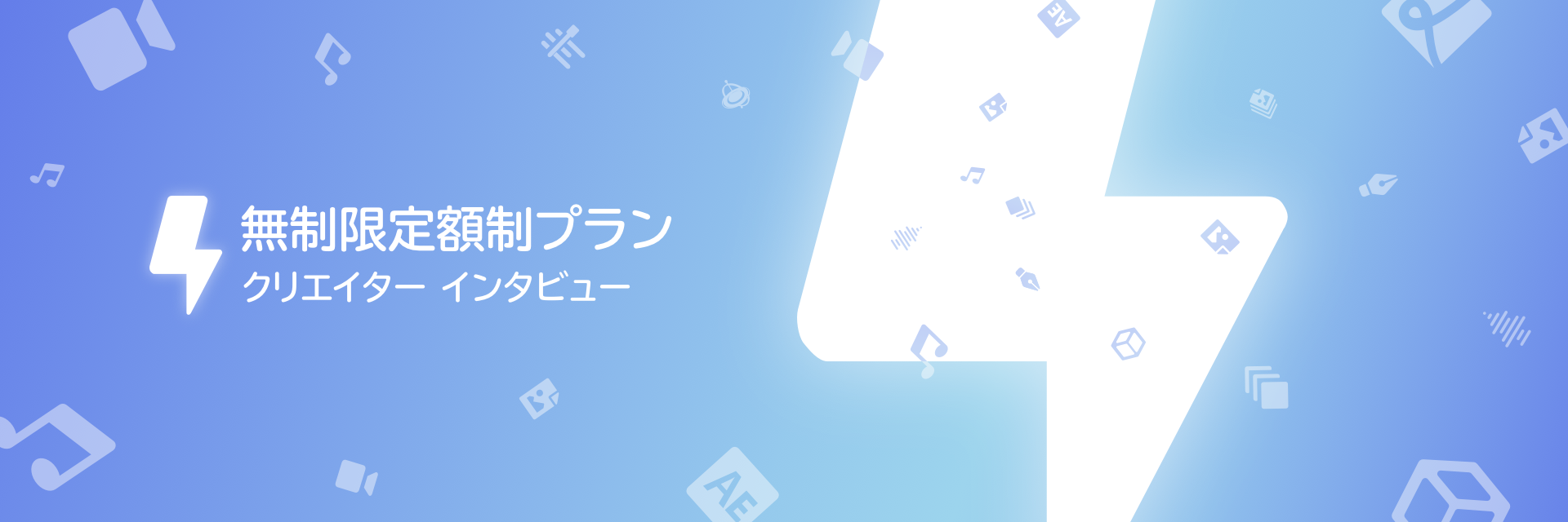 無制限定額制プランという、After Effects, Premiere Pro, 動画素材, BGM素材, 効果音, 画像素材, GIF, ベクター素材など様々なメディアタイプの素材を無制限にダウンロードできるプランを利用している動画クリエイターにインタビューし、利用者のリアルな声をお届けします。 お得な法人プランのユーザーインタビューもぜひご覧ください。