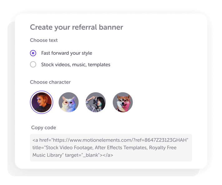Each affiliate is given an affiliate ID that tracks the source of referrals from sharing MotionElements content. Referrals have 365 days from using your link to sign up for a MotionElements account and make purchases.